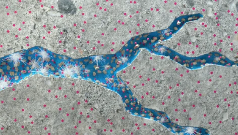 Basic to the development of Xypex Crystalline Technology was a thorough understanding of concrete’s chemical and physical makeup. Concrete is porous. Its tunnel-like capillaries are a natural part of its mass, and permit the passage of water and other liquids. Researchers at Xypex recognized the opportunity for a chemical treatment that would fill these capillaries to prevent the penetration of water and other liquids from any direction. By means of diffusion, the reactive chemicals in Xypex products use water as a migrating medium to enter and travel down the capillaries of the concrete. This process precipitates a chemical reaction between Xypex, moisture and the by-products of cement hydration, forming a new non-soluble crystalline structure. This integral structure fills the capillary tracts rendering the concrete waterproof.
