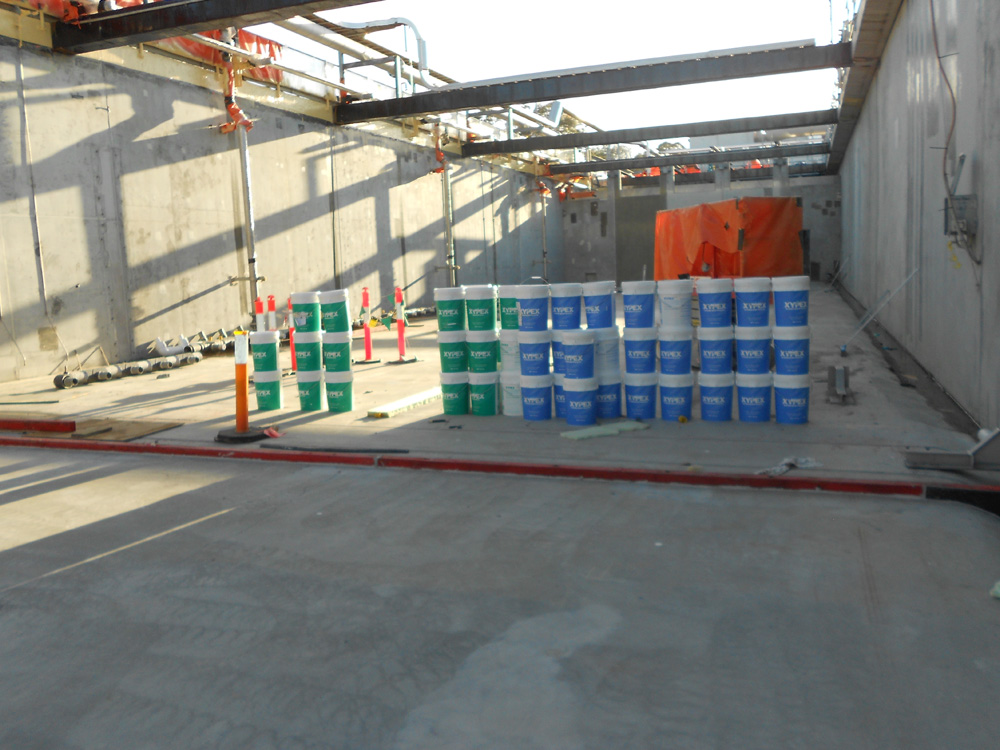 The Xypex Coating System comprising Xypex Concentrate, Xypex Modified and Xypex Gamma Cure was adopted as an effective and practical solution. The coating system was applied to floors and 600mm of walls via spray method. A Polybrid coating with high chemical resistance was subsequently applied over the Xypex coating. Approaching 2,000 kg’s of Xypex was applied to the channel.
